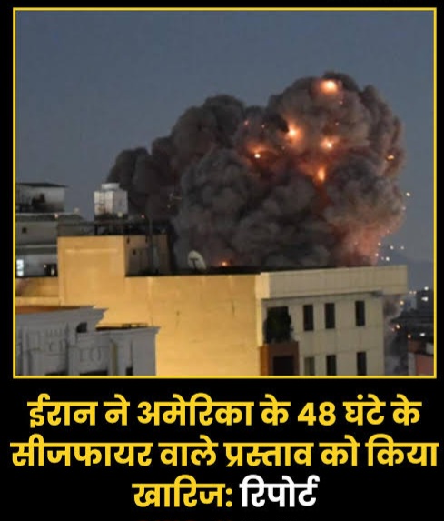 - ईरान ने अमेरिका के 48 घंटे के सीजफ़ायर वाले प्रस्ताव कों किया ख़ारिज :रिपोर्ट