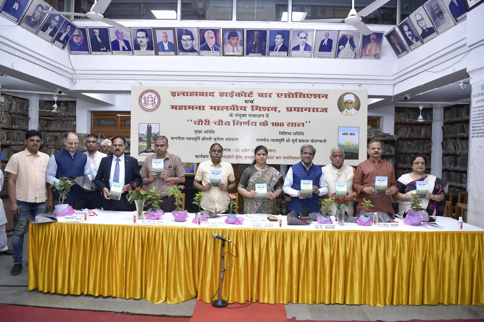 प्रयागराज,up: हाईकोर्ट बार एसोसिएशन, इलाहाबाद के ऐतिहासिक लाइब्रेरी हाल में ‘‘चौरी-चौरा निर्णय के 100 साल’’ विषय एक कार्यक्रम का आयोजन सम्पन्न हुआ जिसके मुख्य अतिथि न्यायमूर्ति सुनीता अग्रवाल एवं विशिष्ट अतिथि न्यायमूर्ति सूर्य प्रकाश केसरवानी के साथ-साथ न्यायमूर्ति शेखर कुमार यादव, न्यायमूर्ति दिनेश पाठक, न्यायमूर्ति सौरभ श्रीवास्तव, न्यायमूर्ति विजय लक्ष्मी, डॉ बीरेन्द्र जायसवाल, प्रो रवि प्रकाश तिवारी उपस्थित रहे।