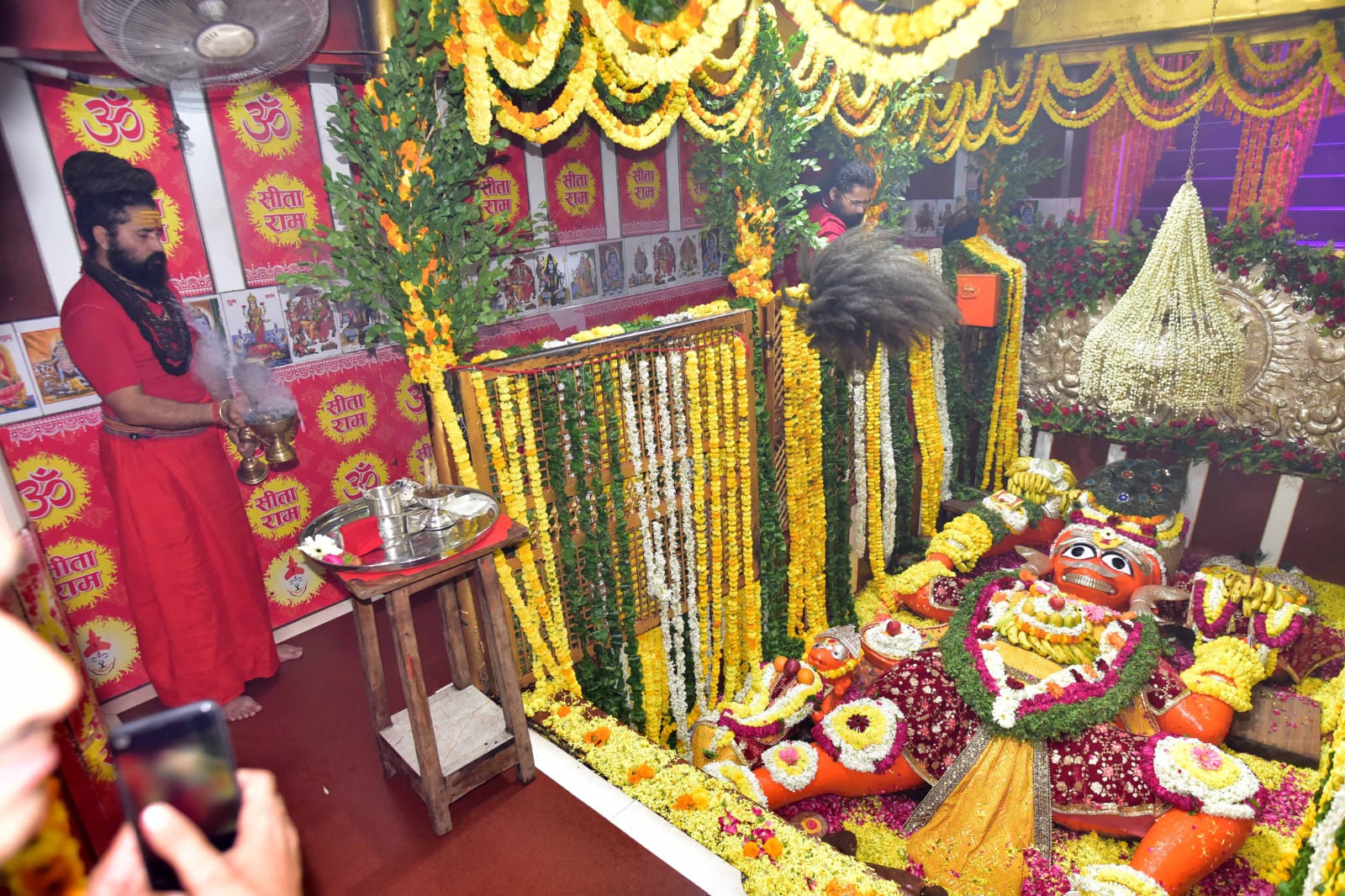 ज्येष्ठ माह के दूसरे बड़े मंगल पर श्री बड़े हनुमान जी मंदिर में की गई भव्य सजावट।