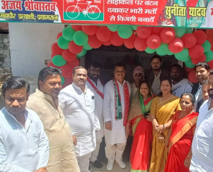 प्रयागराज,up: समाजवादी पार्टी के घोषित पार्षद उम्मीदवारों के आज दर्जन भर से अधिक क्षेत्रीय कार्यालयों का उद्घाटन मेयर प्रत्याशी अजय कुमार श्रीवास्तव ने फीता काटकर किया। नगर निगम क्षेत्र के तेलियर गंज में सुनीता यादव,गोविंदपुर में आशीष पाल, सलोरी में अलोक दूबे, बड़ी बगिया में हिमांशु कुमार, सादियाबाद में मकसूद आलम, हवेलिया में राजेश यादव, कनिहार में पूरन पासी, मुंडेरा में मोहरी राय, ट्रांसपोर्ट नगर में रंजना यादव, जयंती पुर में रीता मौर्या, मामफोर्ड गंज आदि मोहल्लों में आज समाजवादी पार्टी के घोषित प्रत्याशियों के क्षेत्रीय कार्यालय खोले गए।
