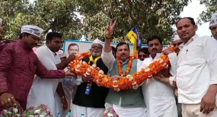 निकाय चुनाव में आम आदमी पार्टी प्रत्याशी के समर्थन में जनसभा को संबोधित करने पहुंचे राज्यसभा सांसद संजय सिंह।