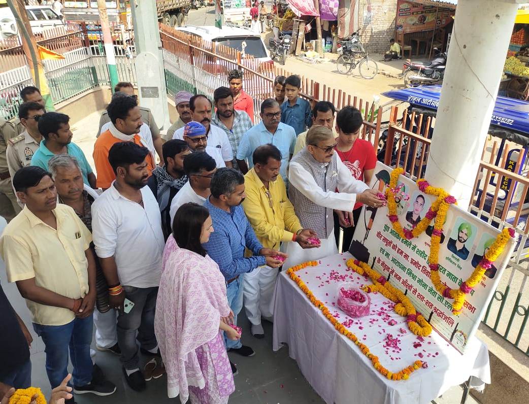 प्रतापगढ़,यूपी। राज्यसभा में विपक्ष के उपनेता प्रमोद तिवारी ने देश की रक्षा करते हुए पुंछ मे शहीद हुए जवानों को यहां माल्यार्पण कर श्रद्धांजलि अर्पित की। उन्होनें शहीदों की स्मृति में शहीद प्रधानमंत्री इन्दिरा गांधी की प्रतिमा पर भी माल्यार्पण किया।