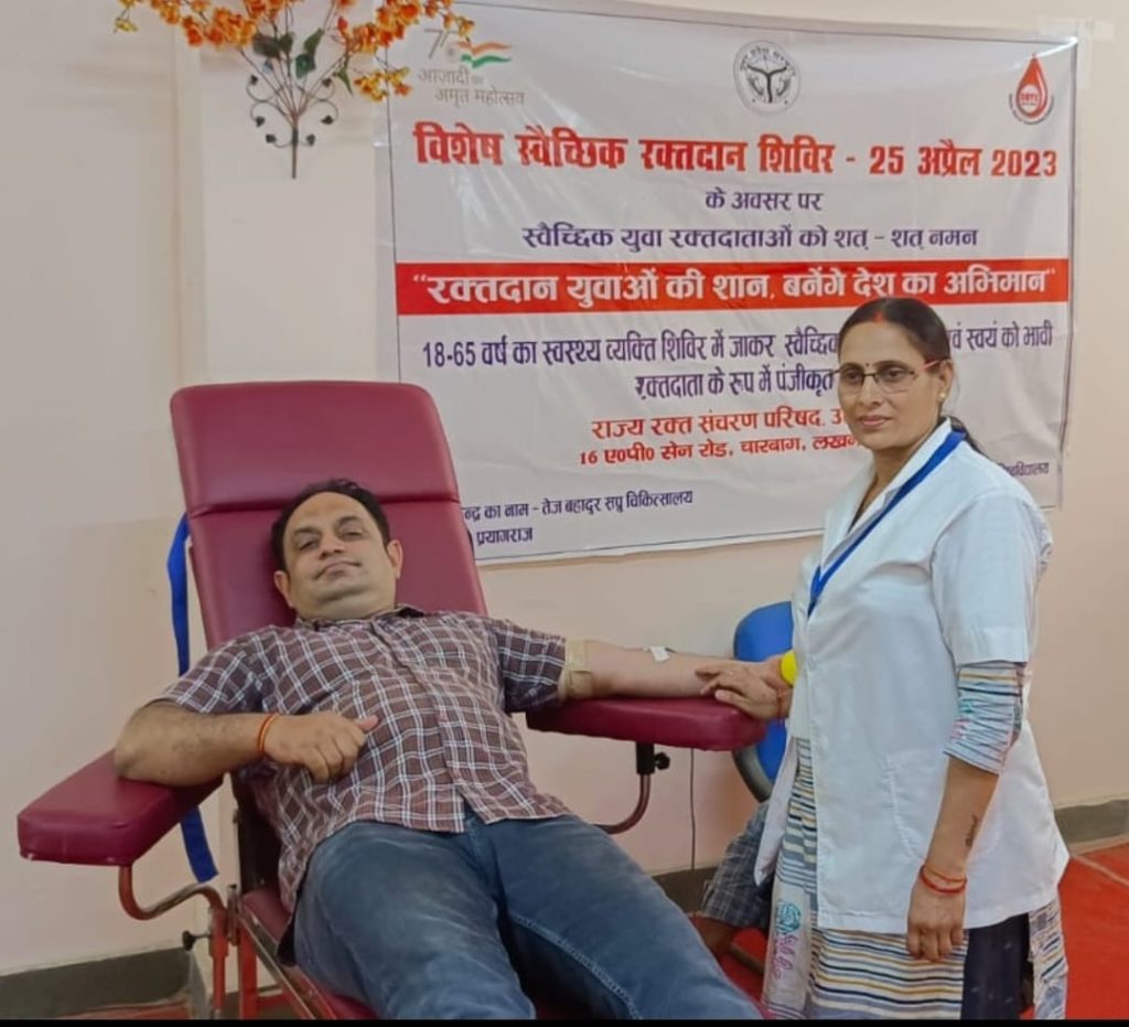 प्रयागराज,यूपी: उत्तर प्रदेश राजर्षि टंडन मुक्त विश्वविद्यालय, प्रयागराज में मंगलवार को स्वैच्छिक रक्तदान शिविर का आयोजन किया गया। शिविर में रक्तदान करने के लिए विश्वविद्यालय परिवार के सदस्यों में उत्साह बरकरार रहा। राज्य रक्त संचरण परिषद, उत्तर प्रदेश के आह्वान पर विश्वविद्यालय की कुलपति प्रोफेसर सीमा सिंह के निर्देशन में मुक्त विश्वविद्यालय में स्वैच्छिक विशेष स्वैच्छिक रक्तदान शिविर का आयोजन स्वास्थ्य विज्ञान विद्या शाखा के तत्वावधान में आयोजित किया गया।