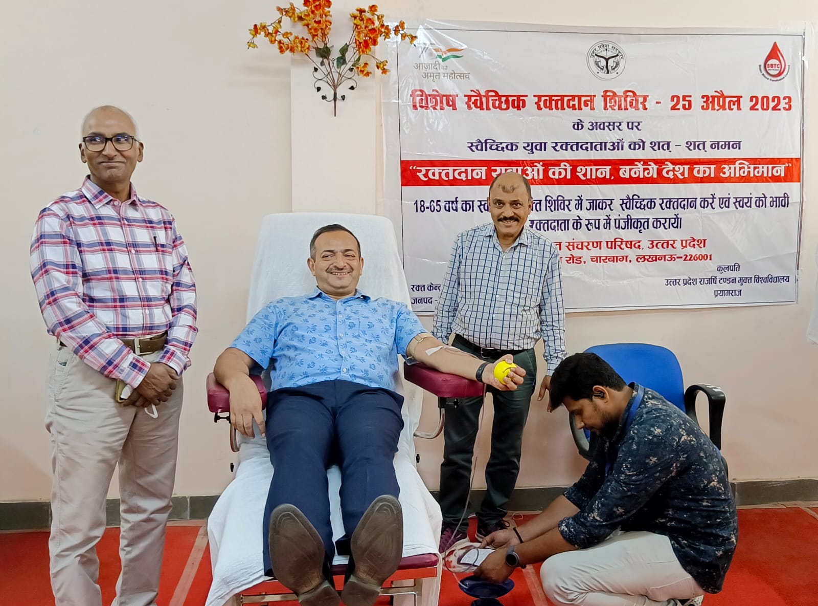 कुलसचिव कर्नल विनय कुमार ने कहा कि रक्तदान एक बहुत पुण्य का कार्य है जो किसी के भी जीवन की रक्षा करने में अमृत के समान है।
