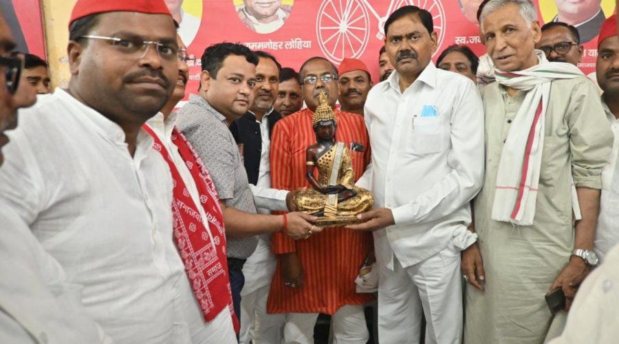 सपा के राष्ट्रीय महासचिव इंद्रजीत सरोज को स्मृति चिन्ह भेंट कर सचिन श्रीवास्तव ने लिया आशीर्वाद।