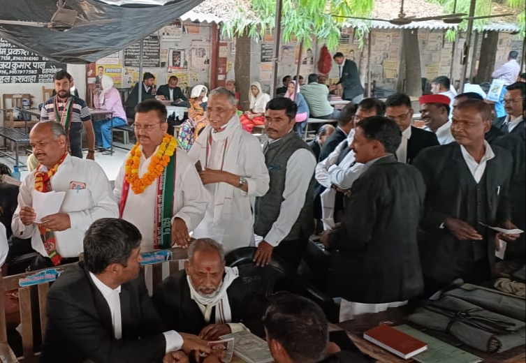 सपा के मेयर प्रत्यासी अजय कुमार श्रीवास्तव ने जिला कचेहरी में अधिवक्ताओं से मिलकर समर्थनकी अपील की।