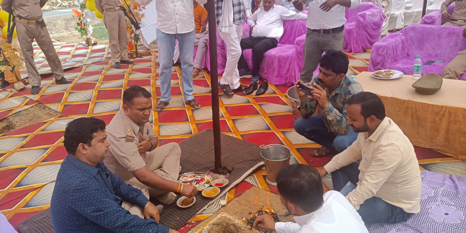 अभयपुर में नई पुलिस चौकी का तहसीलदार ने किया भूमि पूजन।